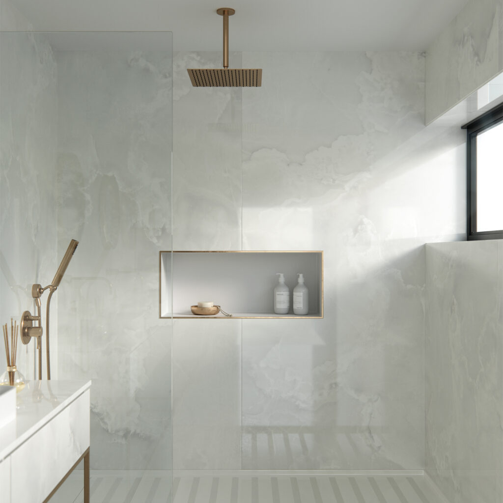 Obłożenie ścian kamieniem to świetny sposób na stworzenie efektownej aranżacji. Płytki kamienne doskonale sprawdzą się w strefie prysznica, nad umywalką, a także jako element dekoracyjny na pozostałych ścianach. Do wyboru masz szeroką gamę kolorów, wzorów i wykończeń, co pozwala na dopasowanie wystroju do indywidualnych preferencji.